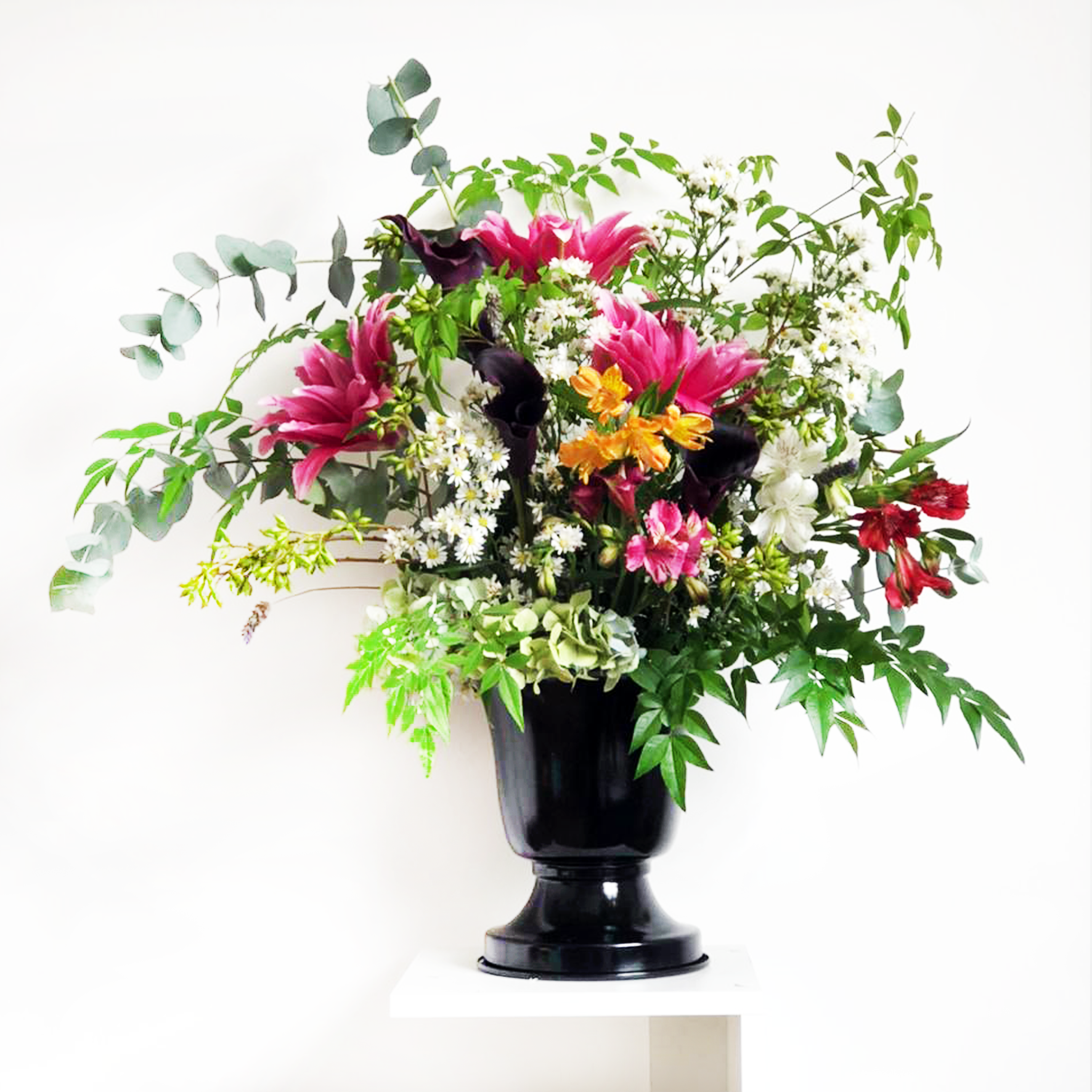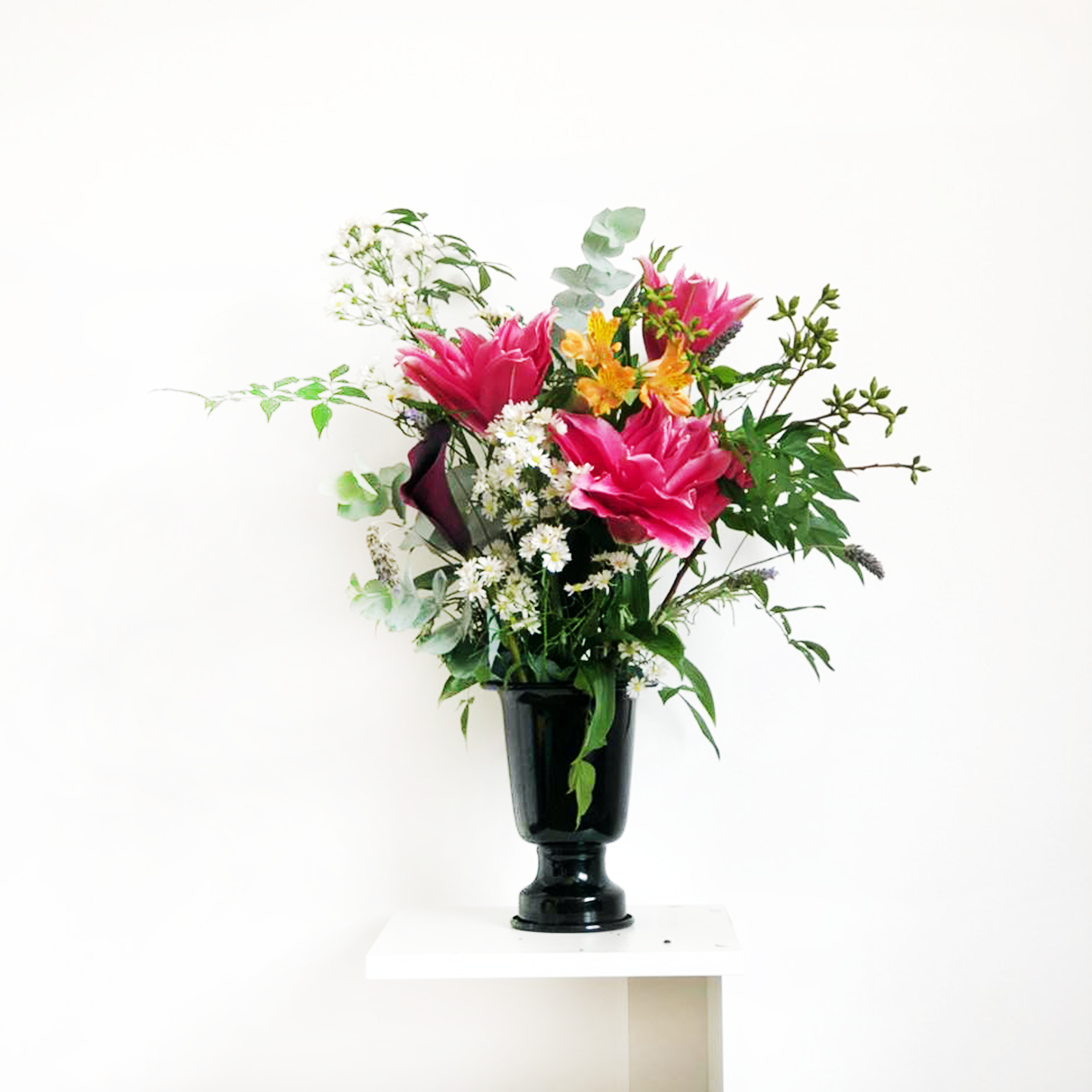 Você receberá um bouquet com 18 hastes de flores da estação coloridas mais folhagens toda QUINZENA.